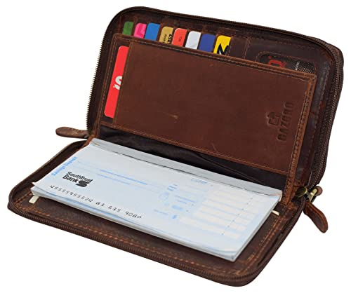 RFID Blocking Wallets for Women Vintage Leather Double Zipper Clutch Checkbook Ladies Wallet (Brown RHU) 4