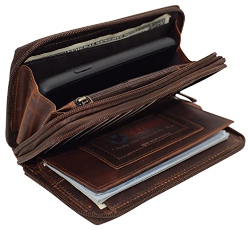 More information about RFID Blocking Wallets for Women Vintage Leather Double Zipper Clutch Checkbook Ladies Wallet (Brown RHU)