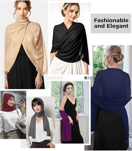 Fabric type: ChiffonCare instructions: Hand WashOrigin: Imported【Warm tips】due to each monitor is different, different resolution and settings, you receive the shawl there may be some degree of colour difference, please understand!【Lightweight & Breathable Chiffon】Our chiffon shawls is made of tulle polyester which feels soft and smooth; It's lightweight, comfortable to wear and allows a long span of using.It is soft, skin-friendly, comfortable, quick-drying and lightweight, allowing you to move freely and feel the cool breeze, while still providing coverage and protection, perfect for everyday use.Especially perfect for a chilly outdoor night.【Multi Ways to Wear】 One can wear it long, knotted, looped, twisted, or doubled around neck. Also can be used as sun-protection, head wrap, hijab or cover up. It can be styled in different ways on a Dress, Gown, Blouse, Sweater, Cardigan, Jacket, Blazer, Purse or Shirt. Made with the best materials with you and your unique style in mind. Also can be fold down to a very slim size, perfect to be use as a fashion scarf, headpiece during travel.【One Size Fits Most】Our shawls and wrap is 79x19with excellent coverage and sufficient length, the attractive elegant shawl covers your shoulders & arms perfectly and gives your hands freedom. One size fits most women.It is a good size for wear it as a scarf, shawl or wrap for women. This retro & fine workmanship shawl is a great accessory for spring, summer, fall and winter, which will make you look elegant and youthful.【EXPECTED GIFTS】If you're considering what to give that special someone, look no further!This shawl is really a perfect gift for your bridal, family, girlfriend, party guests and bridesmaids. It can be easily matched for your outfit, gown, blouse, jacket, shirt, bridesmaid dress, evening dress, wedding dress, homecoming dress, birthday dress etc. This warm gift will bring good memories and joy to your lover on a special day.【Suitable for Multiple Occasions】This chiffon shawl can be worn on many different occasions, including wedding, party, birthday, Valentine's Day, wedding anniversary and other formal occasions. This sheer chiffon shawl is not only beautiful and elegant, but also practical.Additionally, it makes for a perfect gift choice for birthdays, holidays, anniversaries, or any special occasion, showcasing your thoughtfulness and consideration for the recipient. Perfect for everyday use. superior materials and excellent craftsmanship ensure long-lasting durability.