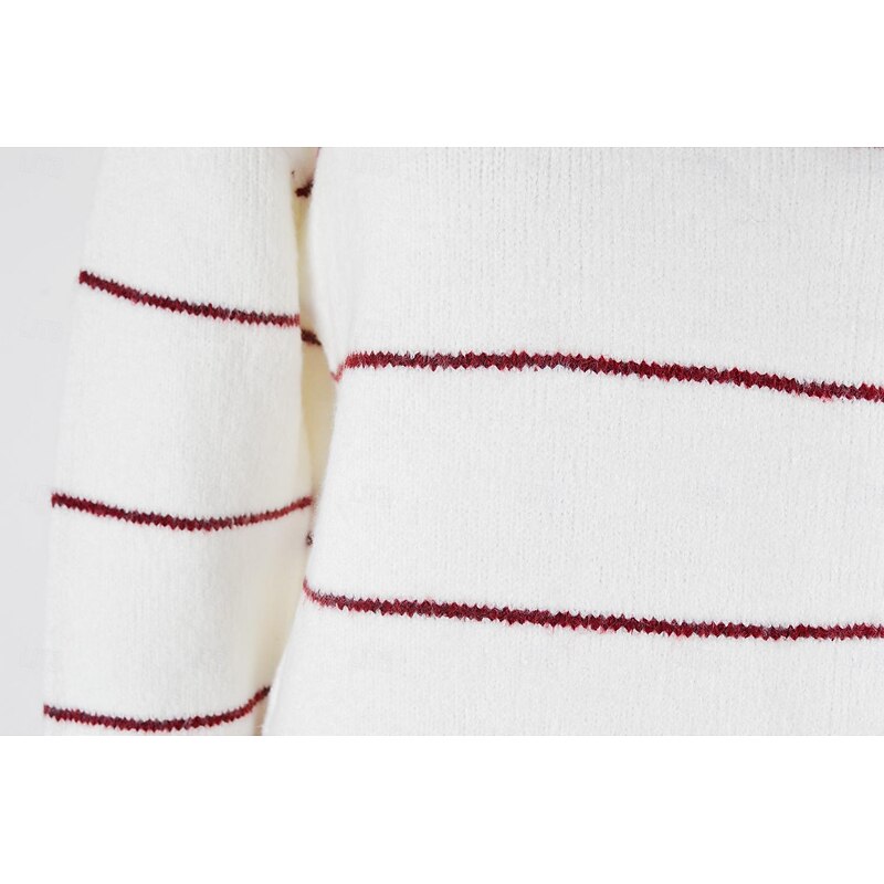 Highlights [Fabric] Crafted from a soft, stretchy polyester blend, this sweater offers a cozy and comfortable fit. The ribbed knit style adds texture and warmth, perfect for the changing seasons of spring through winter. [Fit and Design] Featuring a loose-fit silhouette, this sweater is designed with classic horizontal stripes in contrasting black and white. The crew neck and long sleeves contribute to its timeless appeal, while the ribbed pattern gives it a contemporary touch. [Design Highlights] The sweater's simplicity is its charm, with the striped design offering a versatile look that easily pairs with a variety of outfits. The relaxed, long fit makes it perfect for layering, and the crew neck adds an understated elegance to the overall design. [Occasions] Ideal for work or casual outings, this sweater is a versatile piece that fits numerous occasions. Whether you're heading to the office or enjoying a casual weekend, its sophisticated yet basic design ensures you're dressed for success. [Size Notice] Available in sizes S, M, L, and XL, this sweater is designed to offer a standard fit. Select your usual size for the best fit experience.