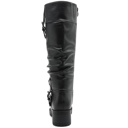 GLOBALWIN Women's Black Knee-High Boots: Fashion Dressy Riding Boots - Chunky Low Heel, Slouchy Design, Buckle Detail, All-Season, Comfortable 2-Inch Heels 7