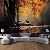HOT ! Fall Forest Hanging Tapestry Deer Wall Art Large Tapestry Mural Decor Photograph Backdrop Blanket Curtain Home Bedroom Living Room Decoration