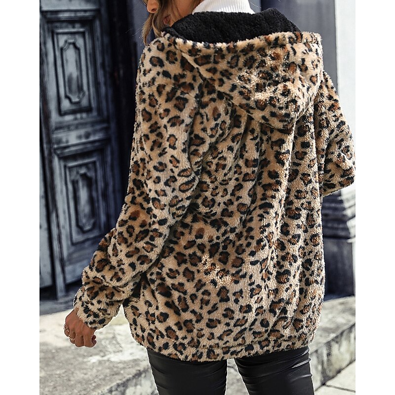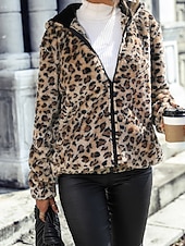 More information about Women's Teddy Coat Hoodie Jacket Warm Comfortable Zipper Pocket Casual Leopard Vacation Casual Daily Wear Going out Regular Hooded Regular Fit Long Sleeve Outerwear Coffee Fall Winter