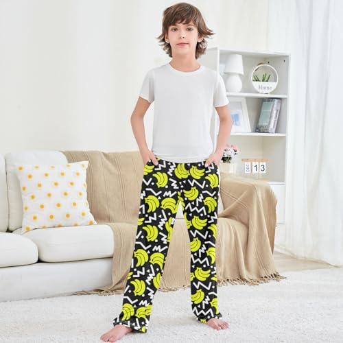 Boy's Pants 90 Style Yellow Banana Black Jogger Pants Elastic Waist Long Bottoms Trousers with Pockets 6-14 Years 4