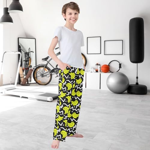 Boy's Pants 90 Style Yellow Banana Black Jogger Pants Elastic Waist Long Bottoms Trousers with Pockets 6-14 Years 2