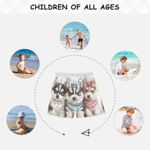 DOMIKING Huskys Bow White Toddler Boys' Swim Trunks Mesh Lining Swim Shorts for Boys Beach Pool Adjustable Waist 2T 3