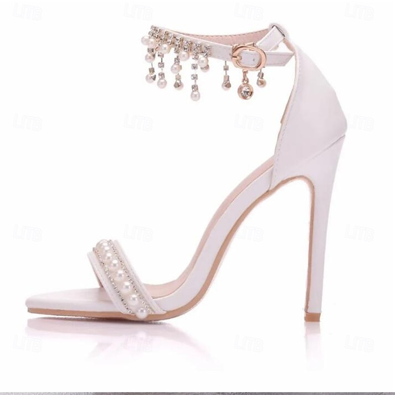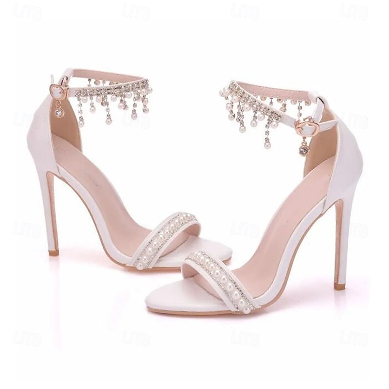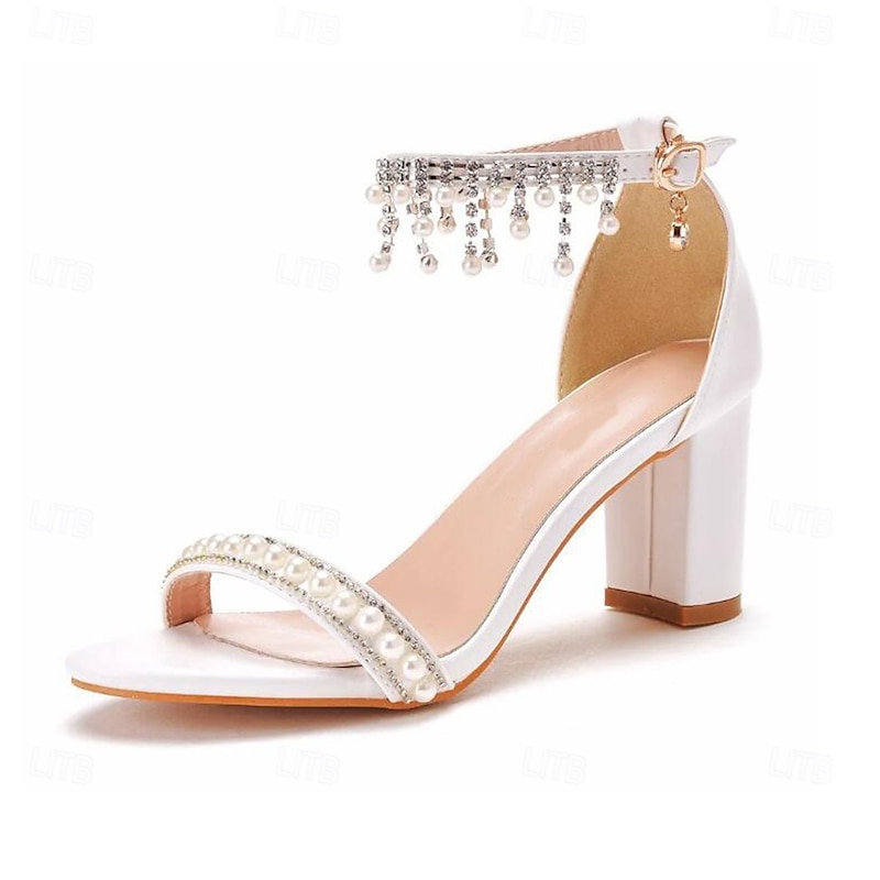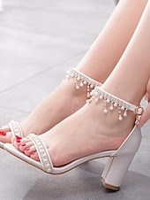 Highlights [Fabric] : Crafted from high-quality PU leather, these women's wedding shoes offer a blend of durability and style. The soft materials ensure superior comfort, making these shoes a delightful choice for long events. [Fit] : These sandals feature a sturdy block heel and stiletto design, providing both stability and an elegant silhouette. The adjustable ankle strap ensures a secure and personalized fit, allowing for hours of soft wear. [Design Highlights] : Adorned with rhinestones, imitation pearls, and delicate tassels, these shoes boast a luxurious and sophisticated aesthetic. The round-toe design adds a cute and charming touch, while the contrast color pattern offers a contemporary twist. [Occasions] : Perfect for weddings, parties, and other special events, these shoes add a touch of glamour to any outfit. Whether for a formal gathering or a chic evening out, they are versatile enough to complement various styles and occasions. [Size Range] : Available in a wide range of sizes from US5.5 to US10.5, these shoes are designed to fit various foot sizes comfortably, ensuring that every bride can find her perfect match.
