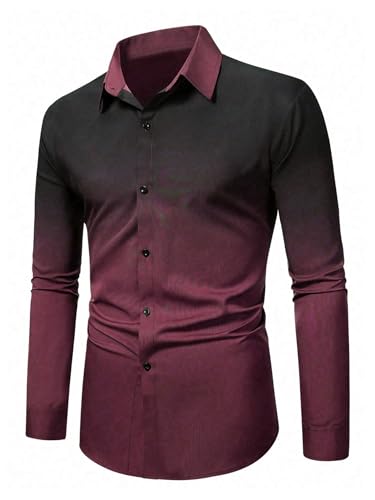 Men's Ombre Dress Shirts Casual Long Sleeve Button Down Business Shirt 4