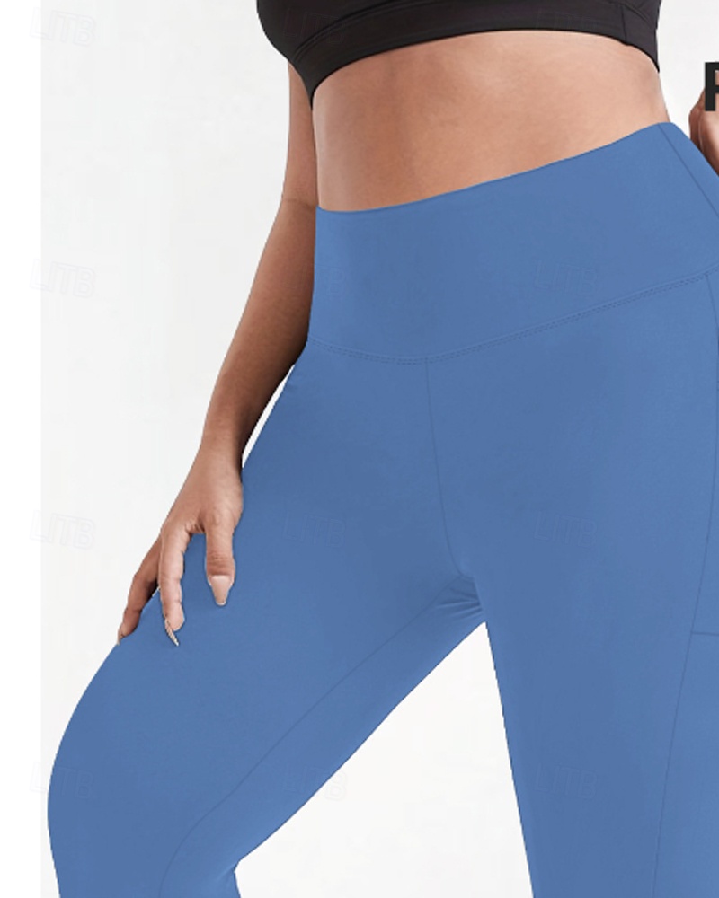 More information about Women's pilates leggings Capri Leggings sport pants Pocket Lightweight Pilates Gym Running Capri Leggings Solid Color Dark Grey Black Army Green Plus Size Sports Activewear Micro-elastic