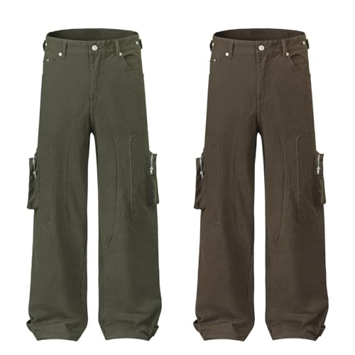 trending ! Jeans Pants Trouser Denim Retro Trendy Street Multi Pocket Personalized Casual Commuter Straight Leg for Men