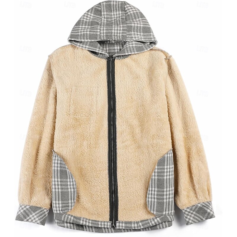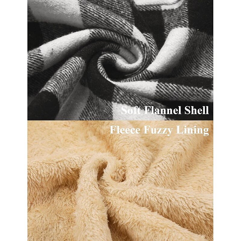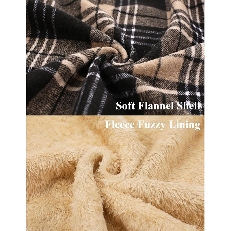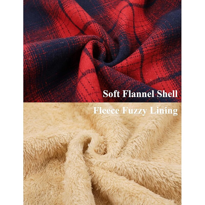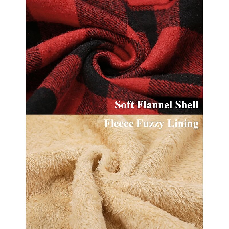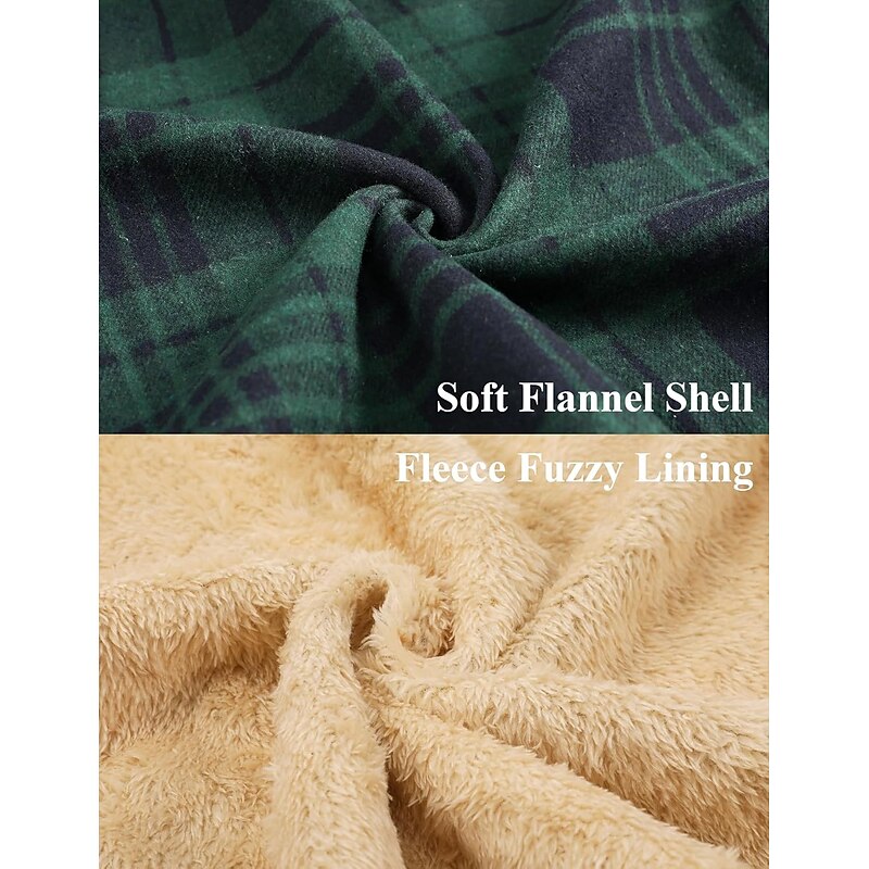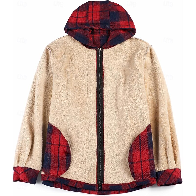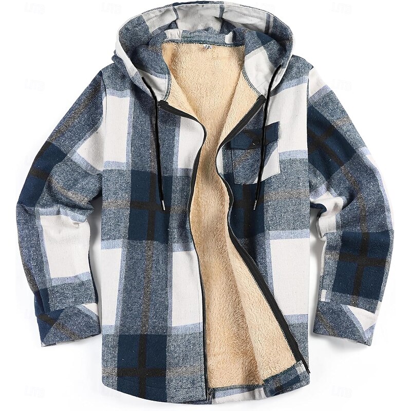 More information about Men's Shirt Jacket Hoodied Jacket Shacket Flannel Fleece Jacket Daily Vacation Thermal Warm Hooded Fall & Winter Plaid Checkered Fashion Streetwear Lapel Regular Black Dark Red Light Green Red Blue