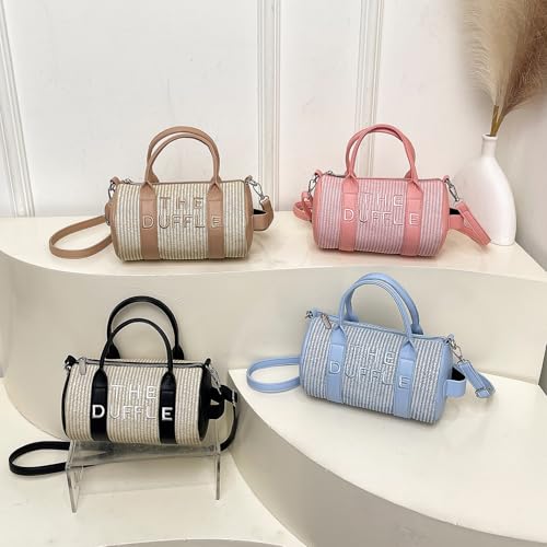 HOT ! Straw Bucket Bag Small Summer Straw Purses for Women Trendy Woven Crossbody Bag Duffle Shoulder Handbag