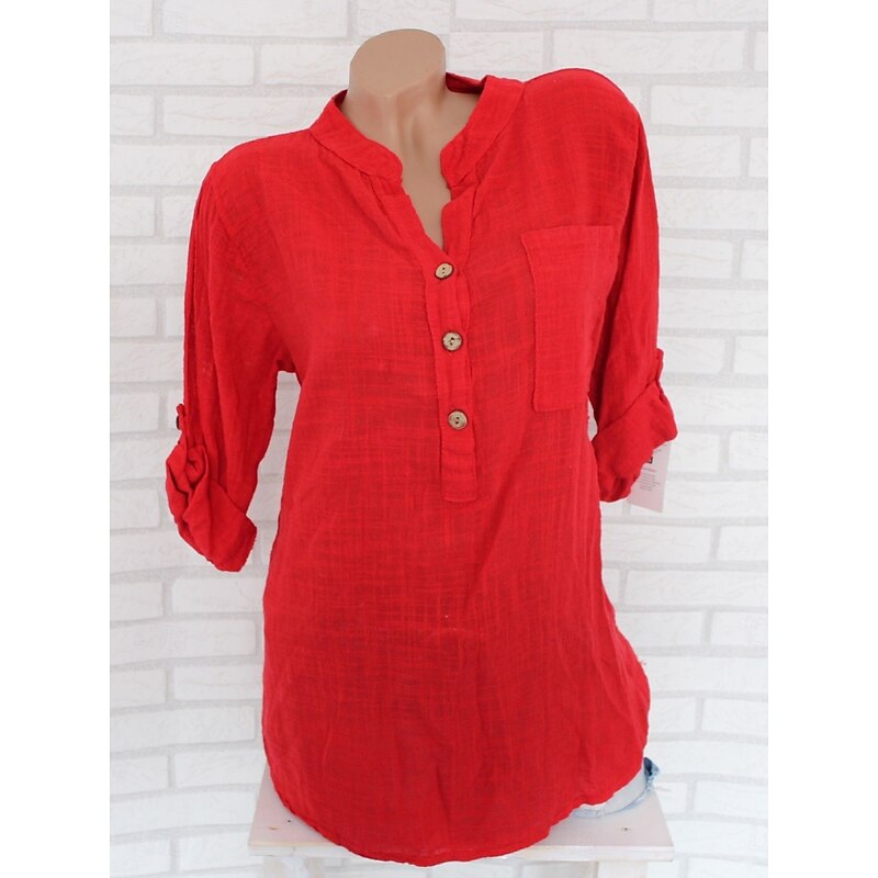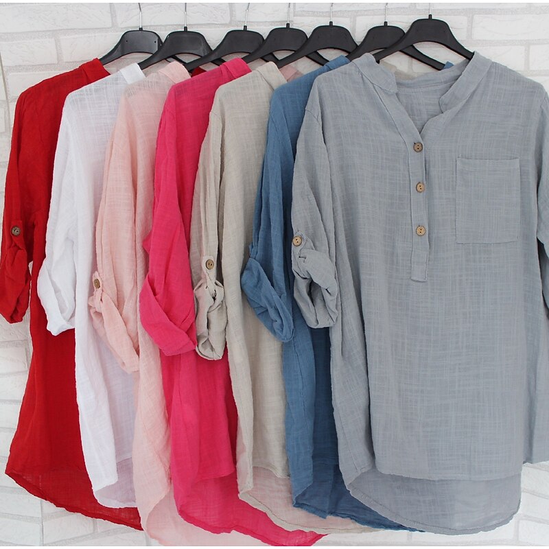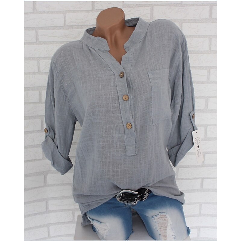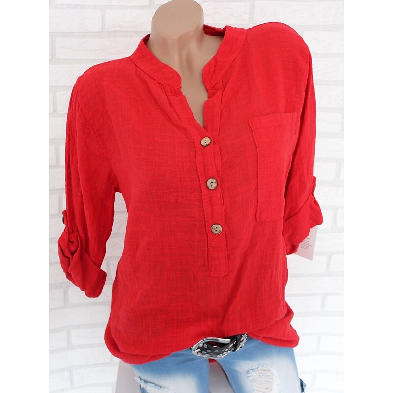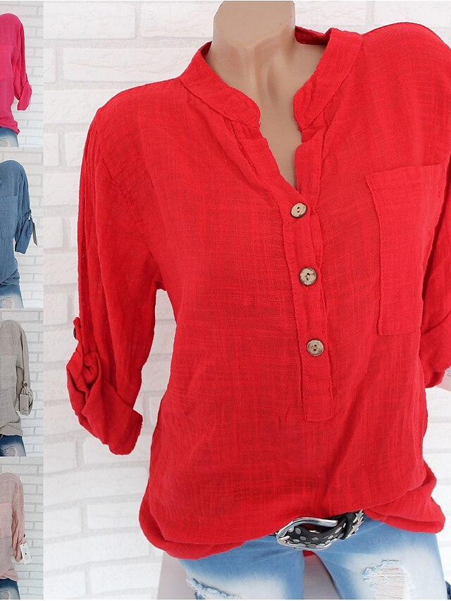 More information about Women's Cotton Linen Shirts Solid Color Stylish Casual Long Sleeve V Neck Regular Tops Daily Buttons White Pink Red Blue Gray Summer Spring