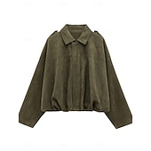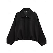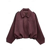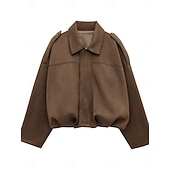 More information about Women's Casual Jacket Comfortable Breathable Zipper Casual Plain Vacation Street Casual Daily Wear Zipper Short Turndown Loose Fit Long Sleeve Outerwear Black Red Brown Spring Fall