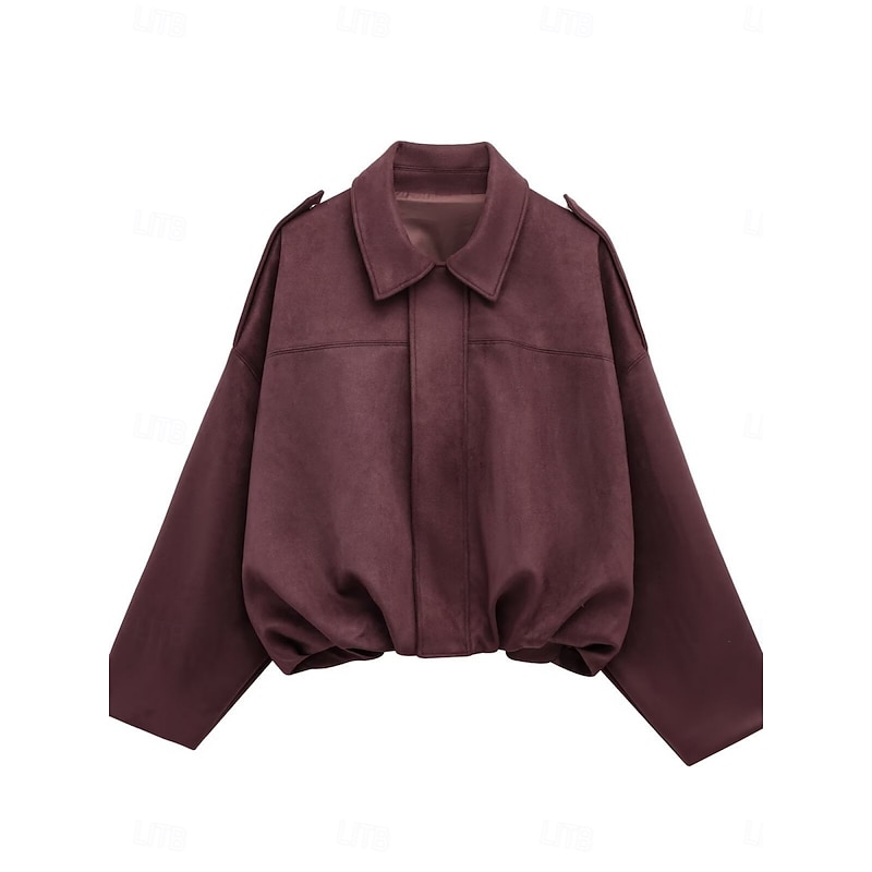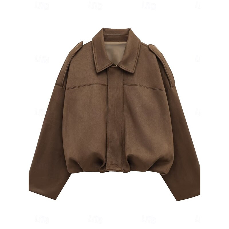 Women's Casual Jacket Comfortable Breathable Zipper Casual Plain Vacation Street Casual Daily Wear Zipper Short Turndown Loose Fit Long Sleeve Outerwear Black Red Brown Spring Fall 17