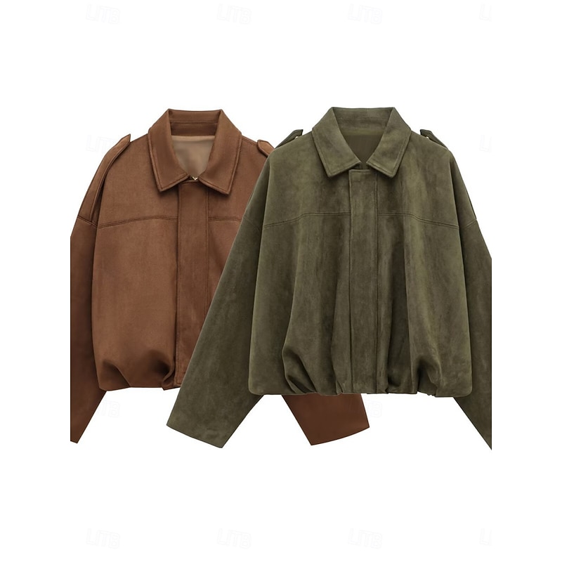 Women's Casual Jacket Comfortable Breathable Zipper Casual Plain Vacation Street Casual Daily Wear Zipper Short Turndown Loose Fit Long Sleeve Outerwear Black Red Brown Spring Fall 14