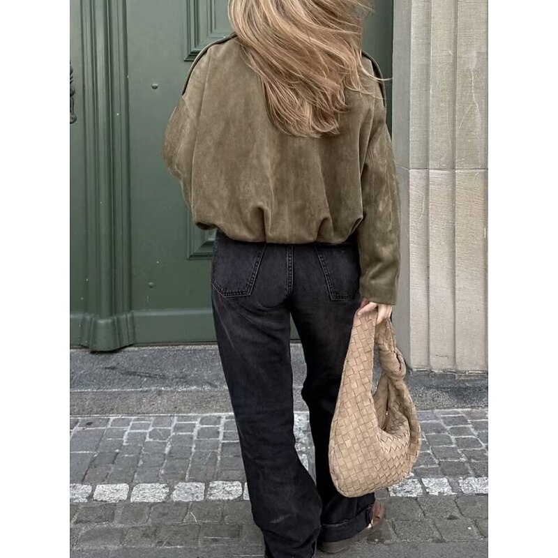 Women's Casual Jacket Comfortable Breathable Zipper Casual Plain Vacation Street Casual Daily Wear Zipper Short Turndown Loose Fit Long Sleeve Outerwear Black Red Brown Spring Fall 5