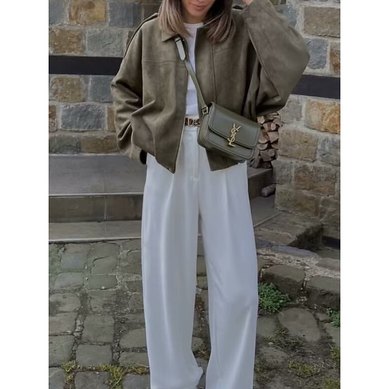 Women's Casual Jacket Comfortable Breathable Zipper Casual Plain Vacation Street Casual Daily Wear Zipper Short Turndown Loose Fit Long Sleeve Outerwear Black Red Brown Spring Fall 10