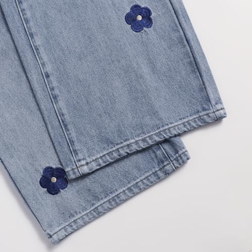 Women's Flower Decal Leg Denim Pants High Waisted Straight Leg Pants Jeans with Pockets 6