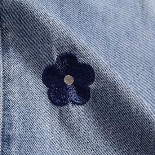 Women's Flower Decal Leg Denim Pants High Waisted Straight Leg Pants Jeans with Pockets 5