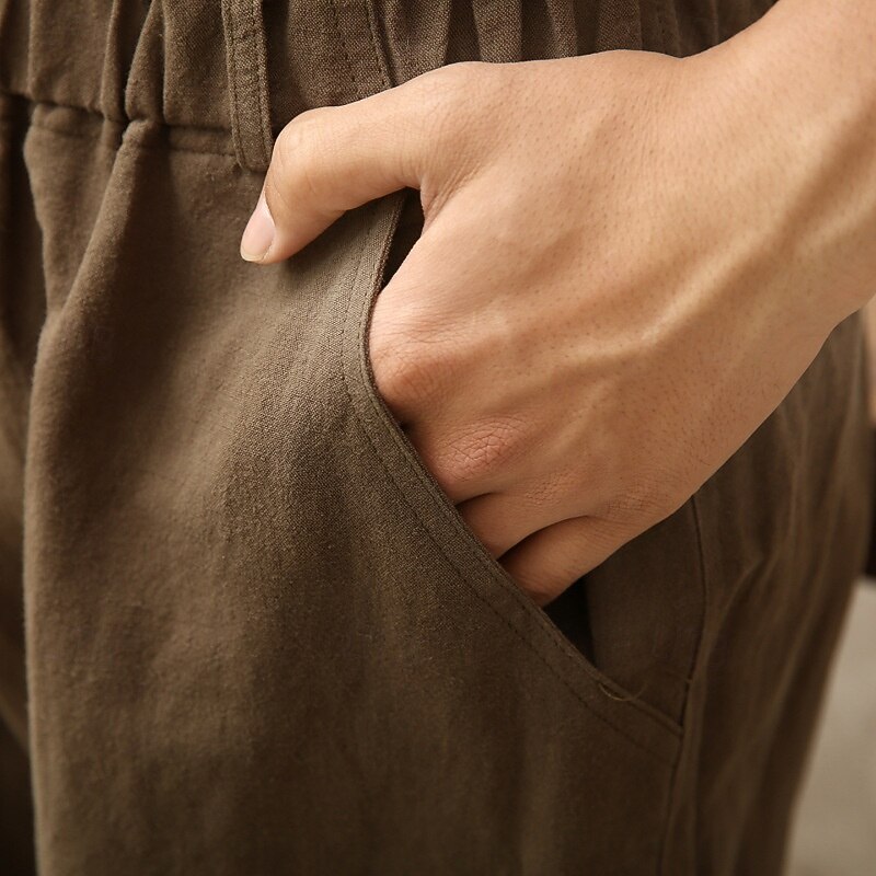 Men's Shorts Linen Shorts Summer Shorts Beach Shorts Capri Pants Pocket Drawstring Elastic Waist Plain Comfort Breathable Calf-Length Vacation Holiday Beach Hawaiian Boho Army Green Khaki 5