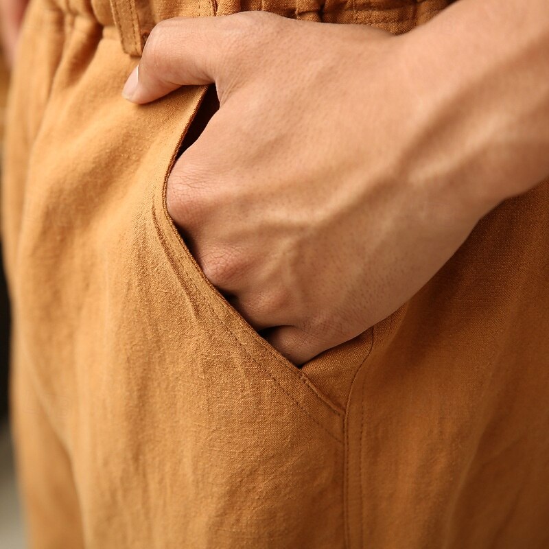 More information about Men's Shorts Linen Shorts Summer Shorts Beach Shorts Capri Pants Pocket Drawstring Elastic Waist Plain Comfort Breathable Calf-Length Vacation Holiday Beach Hawaiian Boho Army Green Khaki