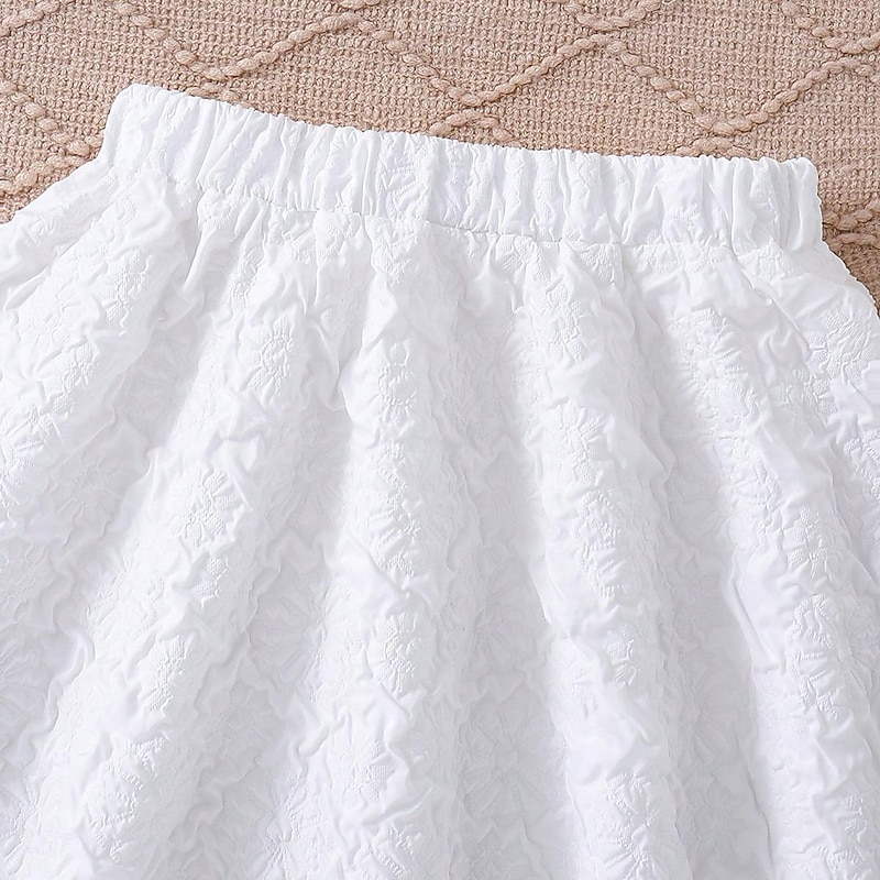 2 Pieces Kids Girls' Solid Color Ruched Dress Suits Set Short Sleeve Fashion School 7-13 Years Summer White 7