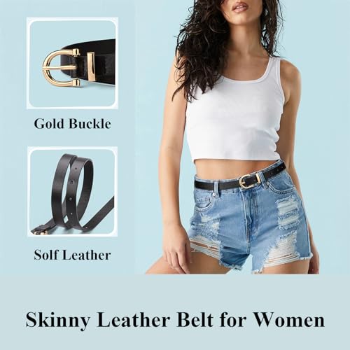 CESCOSI Women Skinny Leather Belt Thin Waist Belt for Jeans Dress with Gold Alloy Buckle 0.7" Width 1