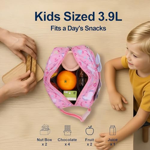 • 【Girls Snack Bag】Superior Insulation for Freshness: Our kids small lunch bag features 10mm pearl cotton and PEVA lining, outperforming typical 5mm EPE foam to keep food fresh for 4-6 hours; ideal for sandwiches, yogurt, and juice boxes during school days or weekend outings