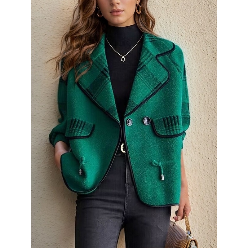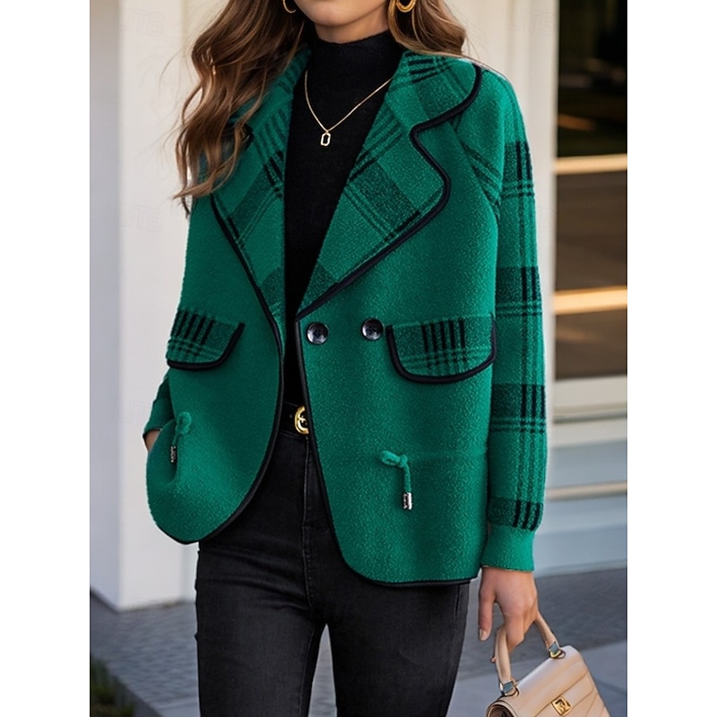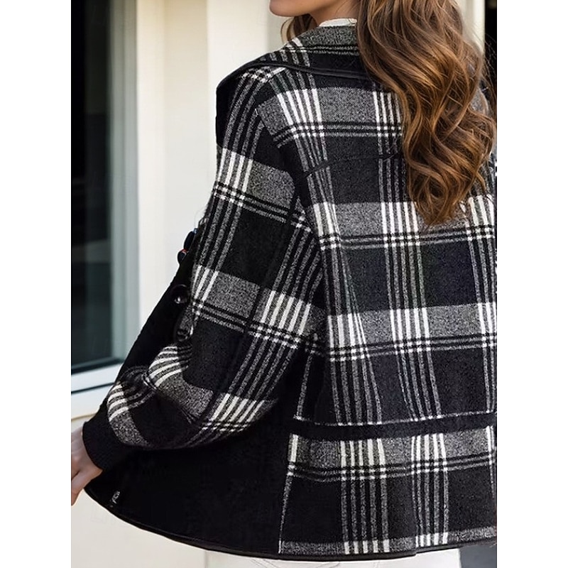 More information about Women's Sweater Cardigan Sweater Jacket Shirt Collar Knit Patchwork Button Knitted Raglan Sleeves Spring Fall Daily Holiday Weekend Daily Stylish Casual Long Sleeve Plaid Color Block Black