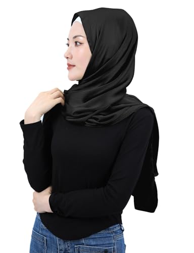 • [PREMIUM HIJAB SCARF FOR WOMEN] Size: 70in*27in, weight: 4.59oz. The crepe hijab has the gloss of silk and the breathability and flowiness of chiffon hijab. Even Indoors, you can see the surface is full of luster. Superior drooping feeling like a waterfall. When you are wrapped in the soft hijab, as comfortable as being surrounded by deep love, the whole person unconsciously gentle