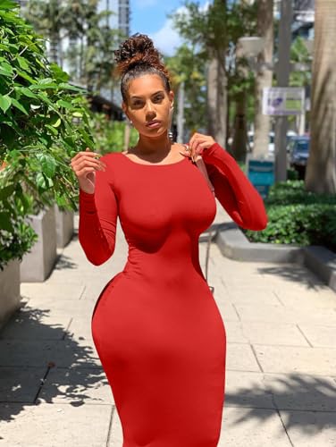 XXTAXN Women's Sexy Bodycon Long Sleeve Round Neck Work Office Midi Pencil Dress 6