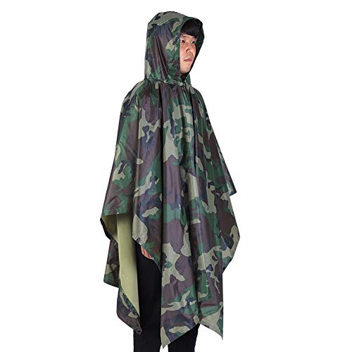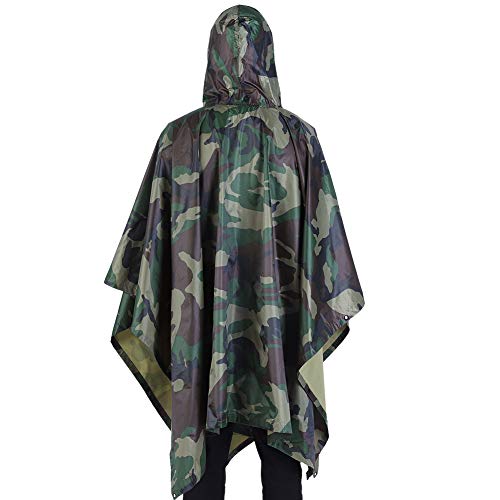 More information about Rain Poncho, Outdoor Lightweight Hooded Ripstop Rain Cape Rain Jacket Military Raincoat Reusable Rain Wear for Camping Hiking Fishing Hunting Sports Events