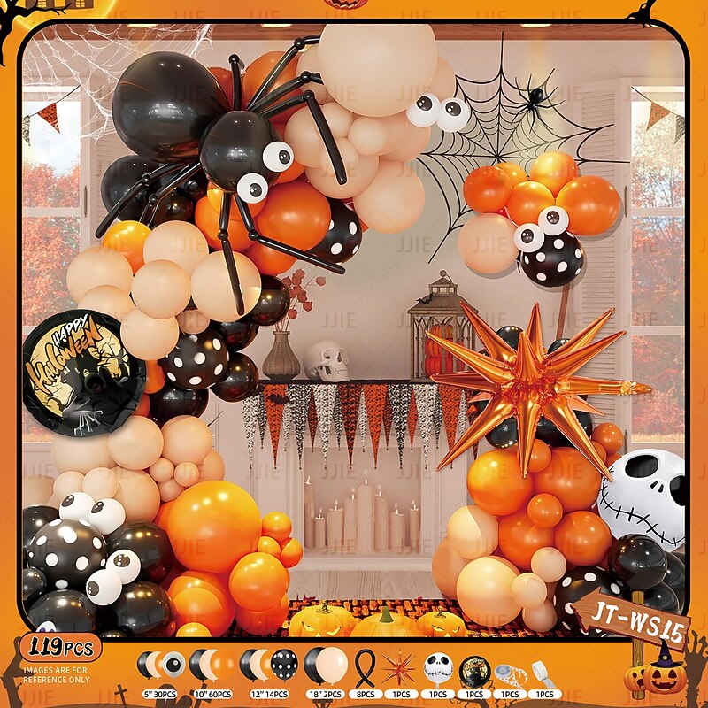 $22.29 - 107pcs Halloween Balloon Arch Garland Kit - Black Orange Nude Latex Balloons Set with 3D Bat Stikers and Pumpkin Foil Eye Print Balloons for Halloween/Thanksgiving Day/Christmas Gift 2025. Shop for cheap Party Supplies online? Buy at lightinthebox.com on sale today!