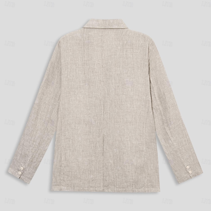 Men's 100% Linen Blazer Jacket Wedding Party Anniversary Summer Spring Linen Solid Color Single Breasted One-button Blazer Blue Beige 12