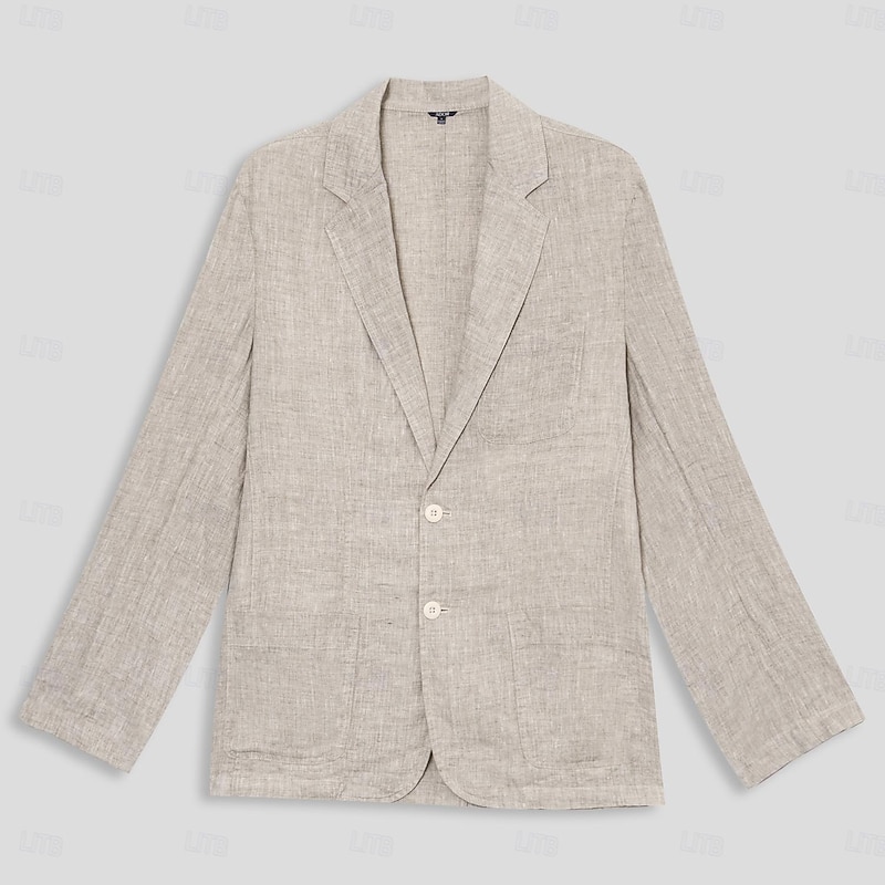 Men's 100% Linen Blazer Jacket Wedding Party Anniversary Summer Spring Linen Solid Color Single Breasted One-button Blazer Blue Beige 2