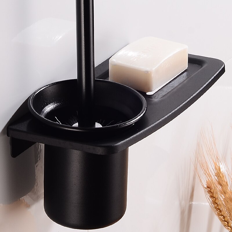 Toilet Brush Holder Set Aluminum Material Include Bathroom Toilet Brush and Toilet Brush Holder Wall Mounted Black 1Set 1