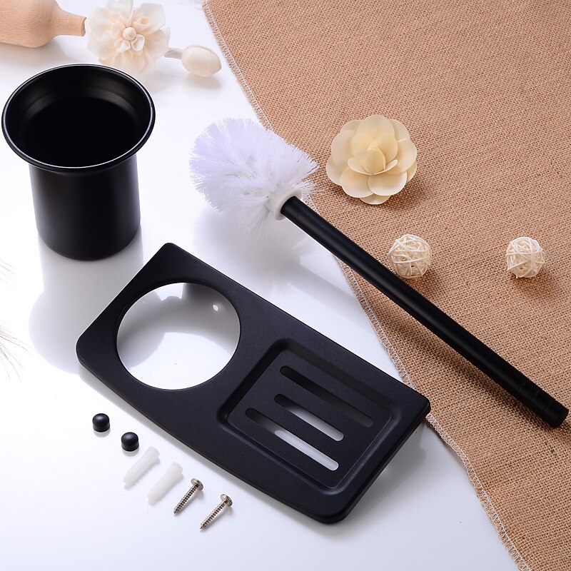 HOT ! Toilet Brush Holder Set Aluminum Material Include Bathroom Toilet Brush and Toilet Brush Holder Wall Mounted Black 1Set
