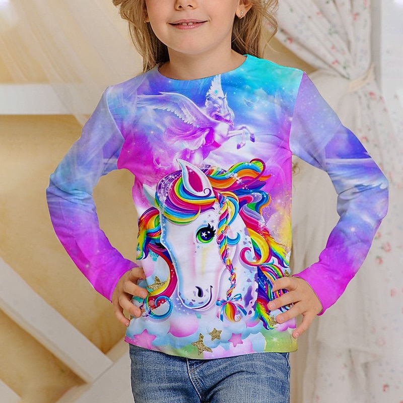 Back to School Girls' 3D Animal T shirt Long Sleeve 3D Print Fall Active Basic Kids 4-12 Years School Casual Sports Regular Fit 10