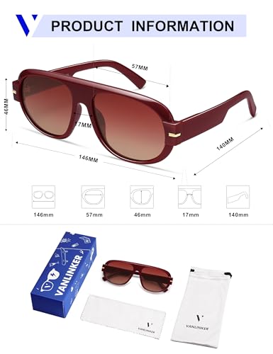 HOT ! VANLINKER Retro 70s Aviator Sunglasses for Men Women Vintage Polarized Square Aviators VL9841