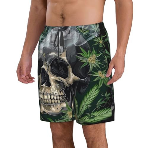 Skull Cannabis Leaf Psychedelic Marijuana Hippie Weed Men's fast Dry Swim Shorts, Mesh Lined Beach Trunks with Pockets