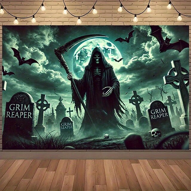 $13.99 - Grim Reaper Tapestry for Halloween – Gothic Cemetery Wall Hanging with Full Moon and Bats, Scary Death Skeleton Wall Decoration for Bedroom or Party 2025. Shop for cheap Halloween Wall Tapestries online? Buy at lightinthebox.com on sale today!