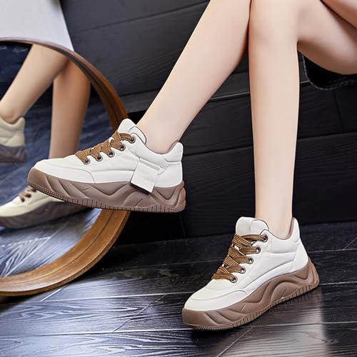 Women's Genuine Leather Platform Heighten Fashion Sneaker Retro Round-Toe Lace Up Lightweight Comfort Casual Walking Shoes 6