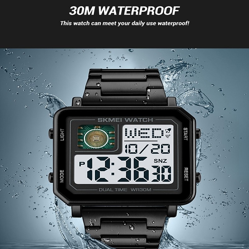 Why Choose SKMEI Men Digital Watch 3ATM Waterproof Luxury Business Men Watch Back Light Stopwatch Stainless Steel Outdoor Sport Square Watch For Men?