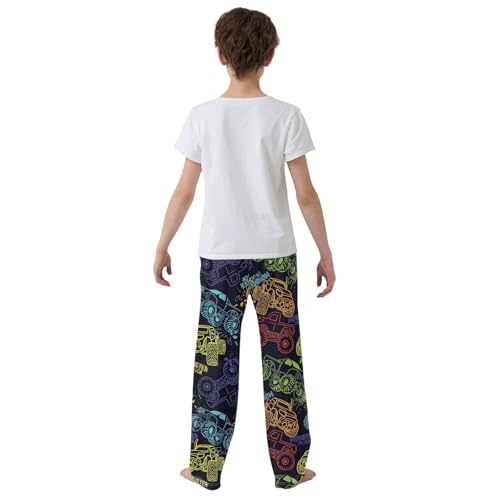 trending ! Boys' Pants Monster Truck Car Black Pattern Long Bottoms Jogger Pants Elastic Waist Trousers with Pockets S-XL
