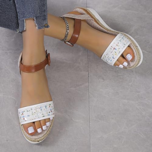 More information about Open Toe Buckle Ankle Strap Espadrilles Flatform Wedge Casual Sandal Espadrille Low Heel Sandals 2025 Close Dressy Summer Girls Flower Girl Heels Single Bands Jute Flat Platform Shoes