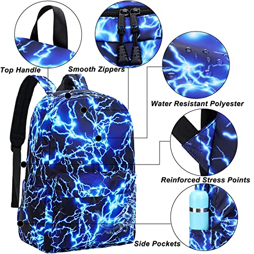 Sugaroom Lightning Print School Backpack for Girls Boys Backpack with Lunch Box Teen Kids Backpack Middle School Bags Preschool Primary Elementary Bookbags Set 4
