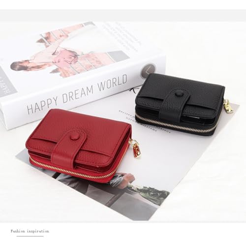 Large Capacity Luxury Genuine First Layer Cowhide Leather Pocket Wallet Ladies Purse,Card Bag,2 in 1 Wallet, Red, One Size 6