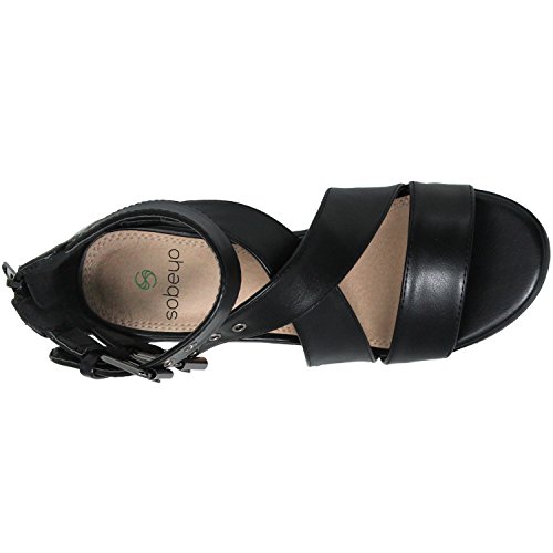 HOT ! SOBEYO Women's Sandals Strappy Buckle Accent Chunky Block Low Heel Shoes
