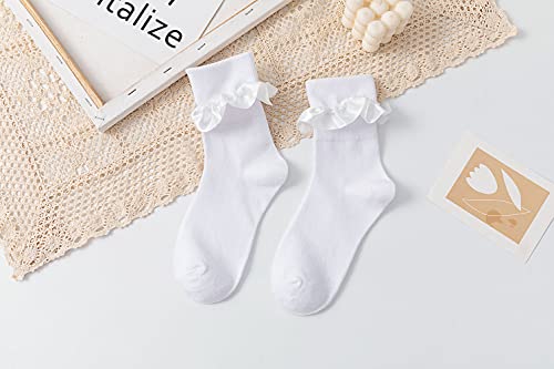 SEMOHOLLI Women Ankle Socks, Pearl Lace Ruffle Frilly Comfortable No-Show Cotton Princess Socks 4